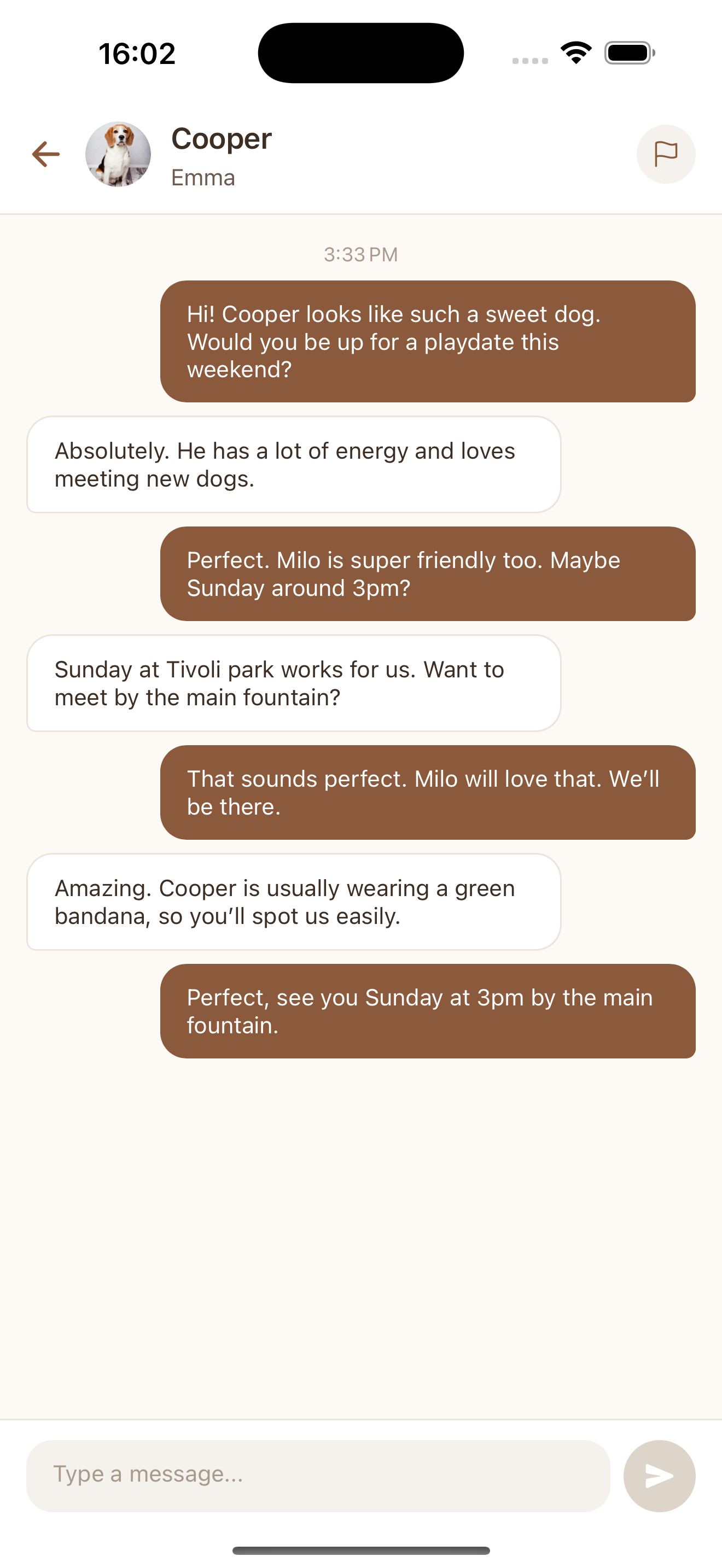 When you match, start chatting in real-time. Plan walks, playdates, and watch friendships bloom.